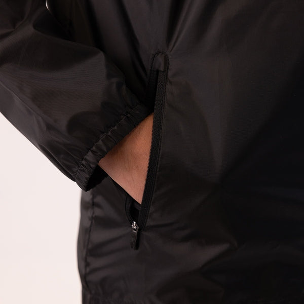 Der JAKO Regenmantel Team 2.0 besteht aus 100% Polyester. Ein hochfunktionelles, wasserabweisendes PU-beschichtetes Obermaterial hält dich bei jedem Wetter trocken. Die integrierte Kapuze, der verlängerte Rücken und der elastische Saum schützen dich vor Wind und Regen. In den integrierten Seitentaschen mit Reißverschluss kannst du deine Wertsachen verstauen.