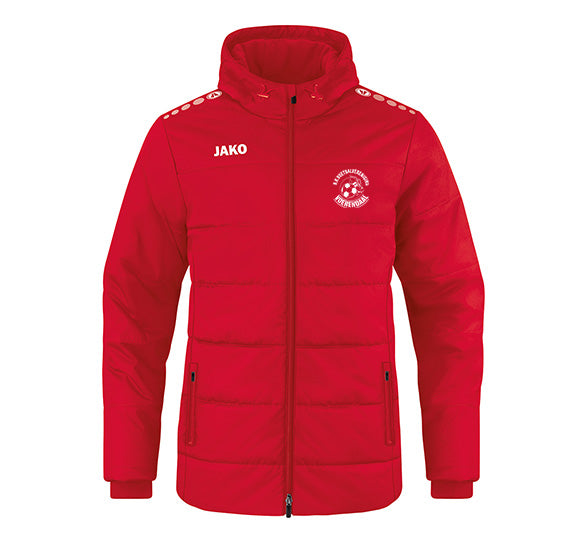 Wasserabweisendes Außenmaterial, Wärmeisolierung und weiches Fleece auf der Innenseite machen die JAKO Trainerweste Team zu deiner idealen Ausrüstung, wenn es kälter wird. Bei ungünstigen Wetterbedingungen können Sie die im Kragen integrierte Kapuze nutzen. Zusätzlich verhindern die integrierten Reißbündchen in den Ärmeln sowie der Kordelzug und die Stopper an der Kapuze das Eindringen von Wind und Regen. So garantiert die Weste optimalen Tragekomfort.